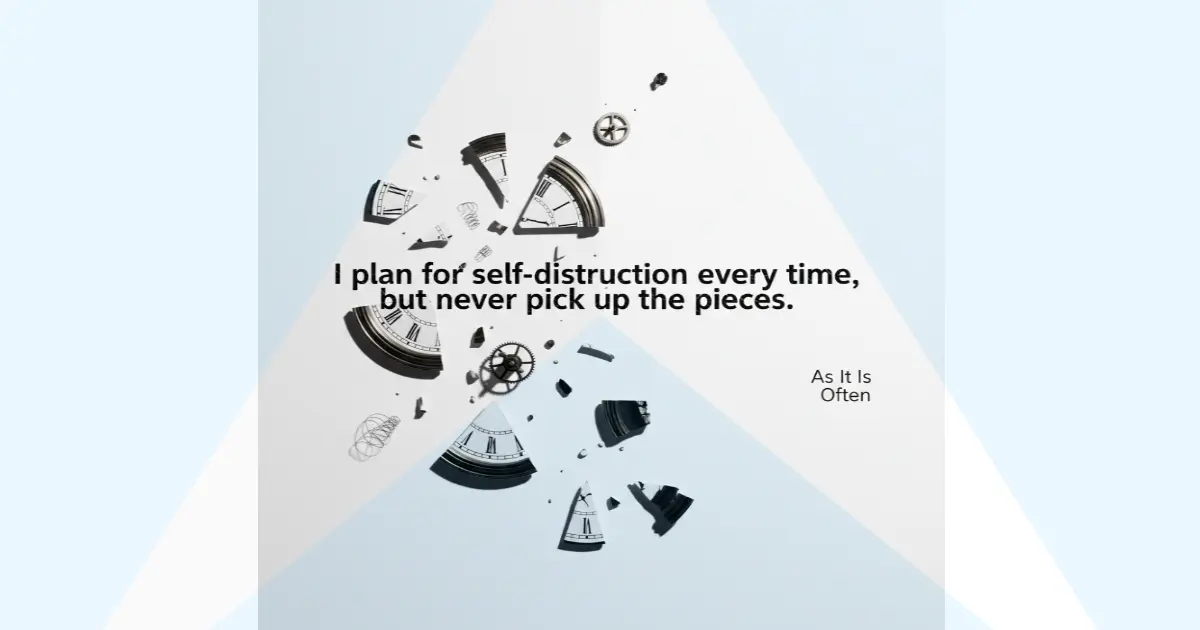 Chorus adalah inti dari pola pikir merusak diri: “I plan for self-destruction every time / But never pick up the pieces.” Ini menunjukkan kesadaran akan pola buruk, namun ketidakmampuan atau keengganan untuk memutus siklus tersebut . Tindakan pencegahan dianggap sebagai “bad advice,” yang bisa diartikan sebagai penolakan terhadap bantuan atau solusi logis, memilih untuk tetap berada dalam kondisi yang akrab meskipun menyakitkan.