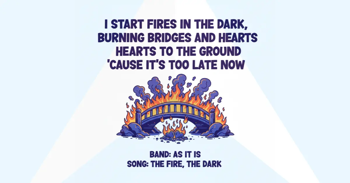 Metafora “membangun api dalam kegelapan” dan “membakar jembatan serta hati” menggambarkan tindakan putus asa dan destruktif yang dilakukan seseorang saat merasa terperangkap dan kehilangan harapan. Lagu ini juga menjadi bagian dari eksplorasi album yang lebih besar terhadap pertanyaan: “Apakah kita meromantisasi penyakit mental?” dan bertujuan merestrukturisasi cara pembahasan kesehatan mental dalam musik.